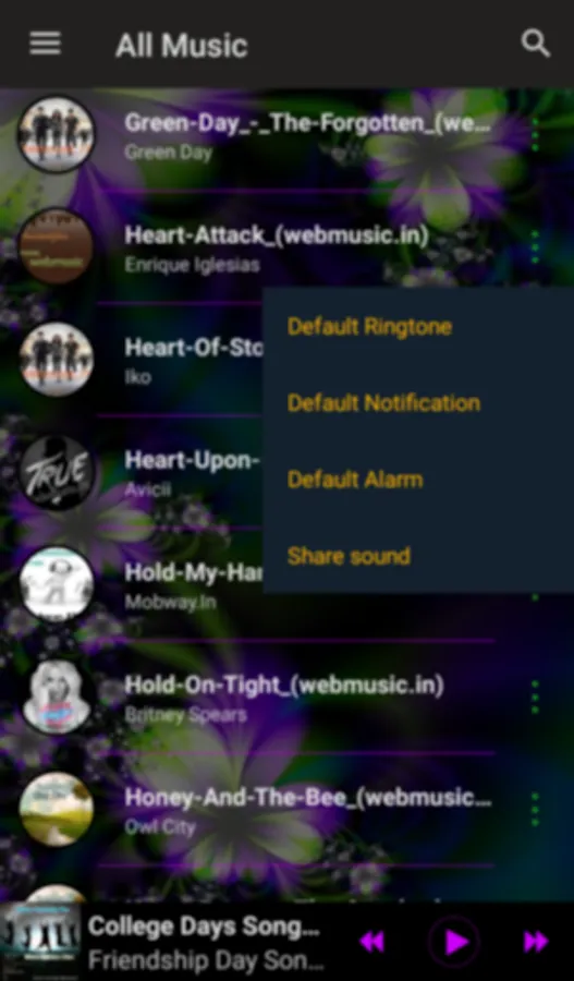 Features of Music Player Application: