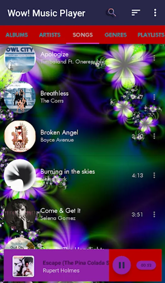 Enjoy free Wow! Music Player | Mp3 Player- listen to your favorite songs. While you enjoy Wow! Music Player expect your great review. Please rate Wow! Music Player if you like and contact us for any suggestions. Thanks...
