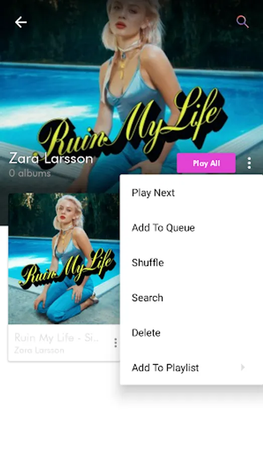 * Play next, Previous, Rewind, and Pause. Queue of songs is supported. Add music to the waiting list very easily.