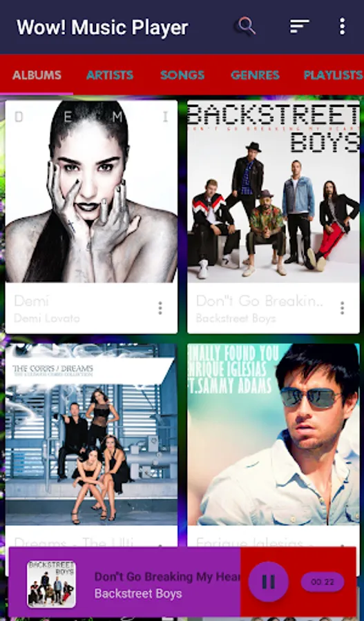 Wow! Music player is designed to bring better experience to user when they listen to the music. Wow! Music player scans all music automatically and group them by Albums, Artist, Songs, Genres, Playlists, Directory. Easy to find the songs you want with search feature. Supports audio equalizer to improves music sound, you can customize with own style, Virtualizes and Bass Boost. Start listening to songs on "Wow! Music player" everyday and enjoy best life. Wow! Music Player is totally free to use.