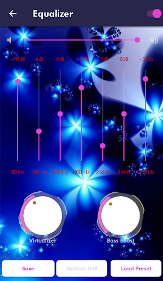 * Equalizer. Wow! Music Player or Mp3 Player has built-in equalizer which brings great music listening experience. Mess around pre-sample presets available plus many effects, save your custom equalizer. Virtualizer and Bass Boost for additional enhancement.