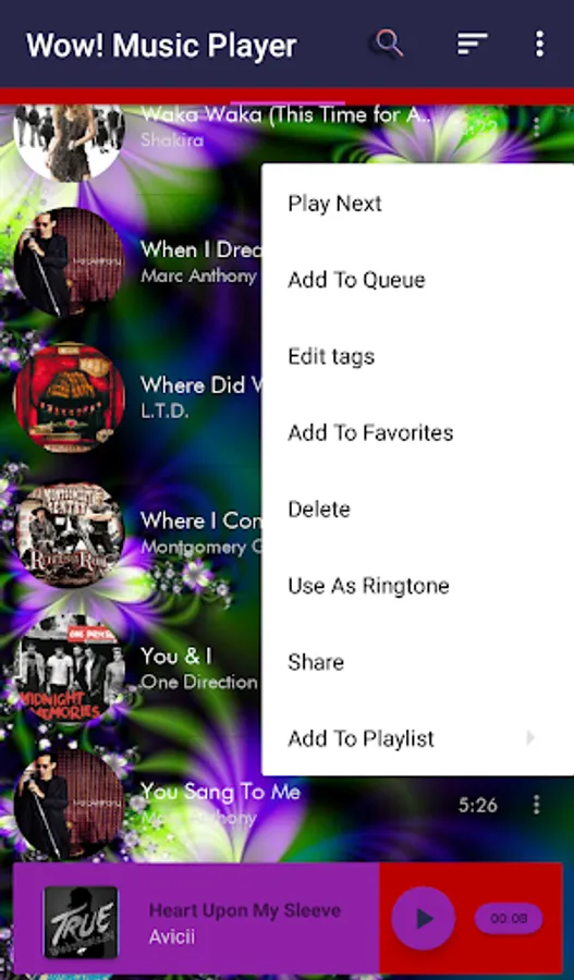 Wow! Music Player [mp3 player] App is a powerful audio player which helps you listen to all kinds of song formats and help you edit music information play around with many options. Wow! Music Player App supports almost any formats of audio files. Following music formats can be play backed well - MP3, WAV, M4A, FLAC, 3GP, AAC, MP4, OGG, etc.