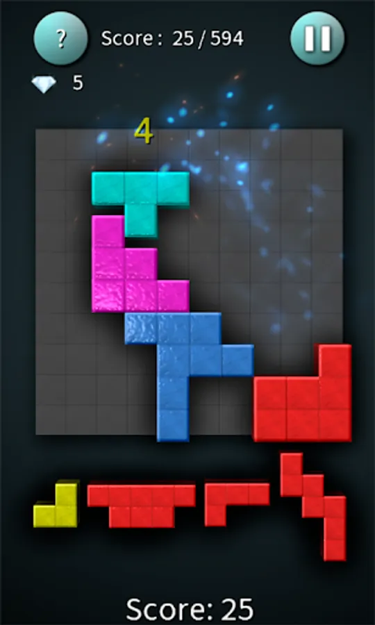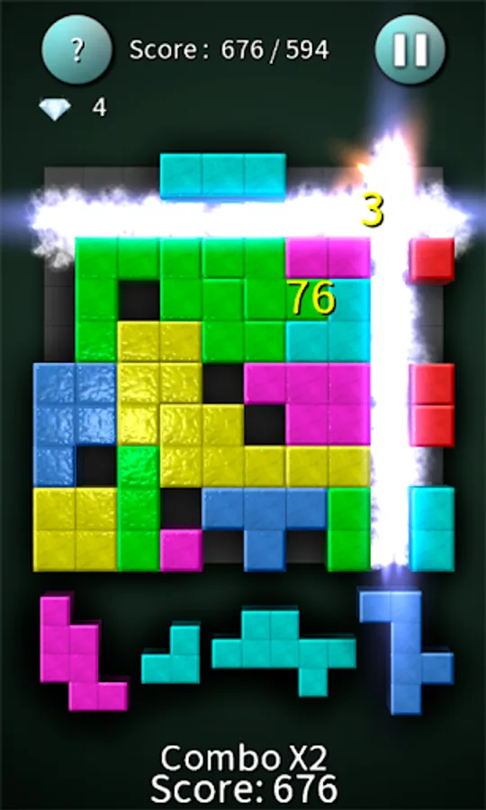 Your goal is to drag & drop blocks on to a 10x10 table to create and destroy full horizontal or vertical lines. Watch out that you do not fill the screen!