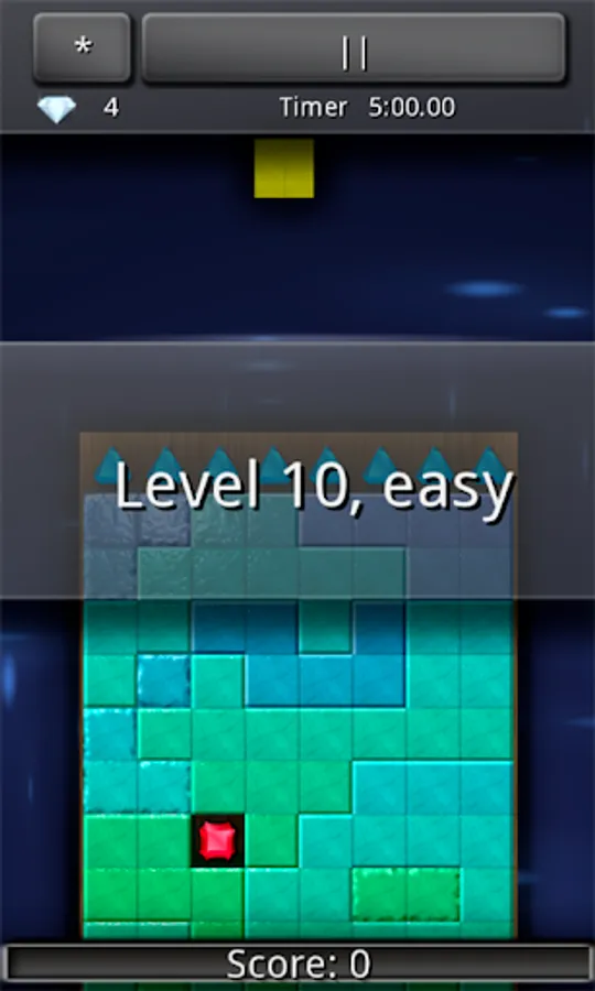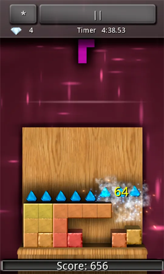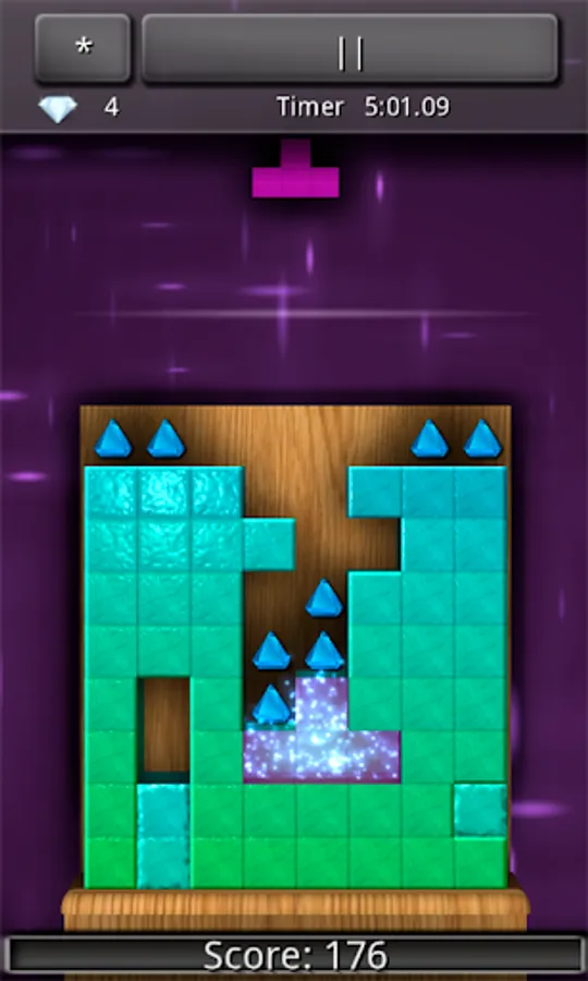 The goal in DreamPuzzle is to get jewels from top of the tower to the bottom by cutting the tower using tetromino blocks.