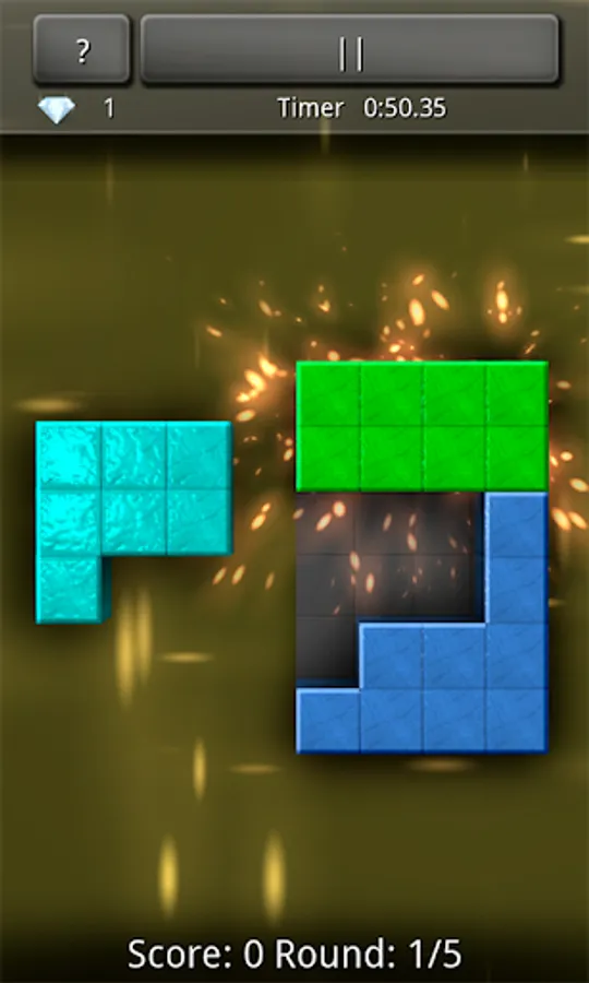 Objective for the player is to fit floating blocks of different shapes onto a table so that the table is fully covered to complete a level.