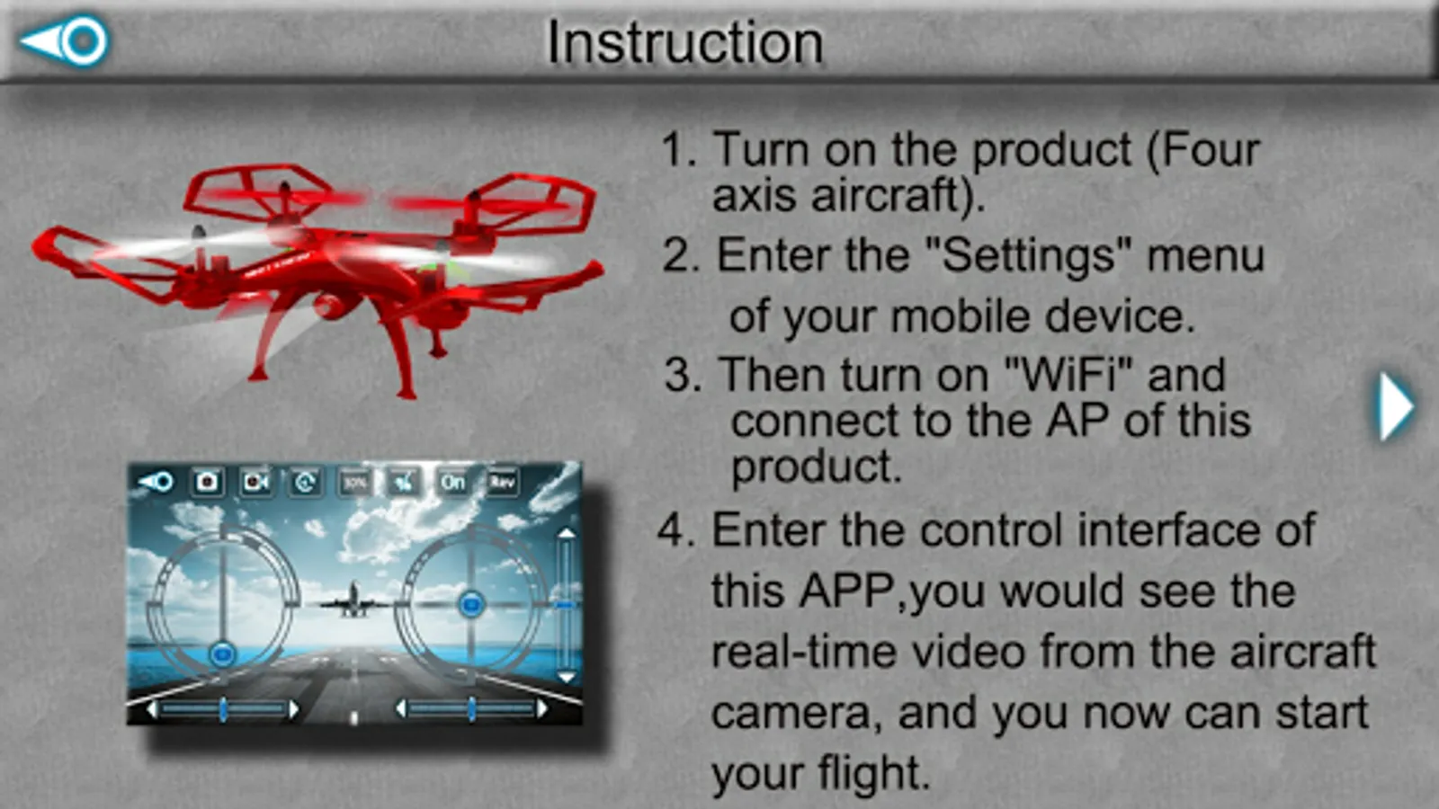 The application can remote control our hardware product——4-axis aircraft. We can watch real time video and take photo by the camera on the aircraft. We can have great experience on this app.