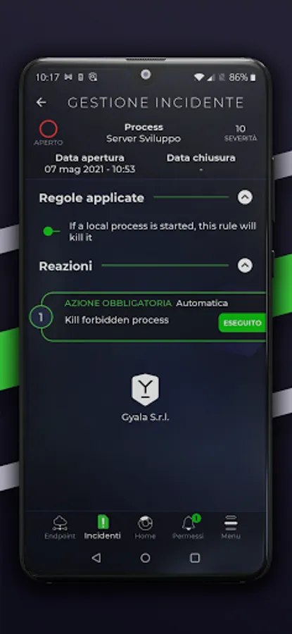 - Ricezione delle notifiche di ogni anomalia riscontrata dagli agent software di Uranyo, installati sui tuoi PC e della relativa reazione automatica implementata da Uranyo.