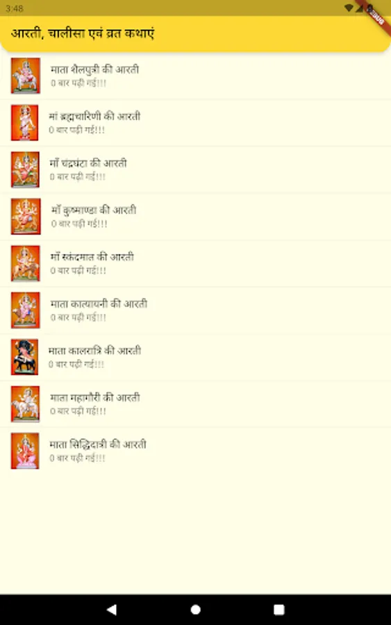 Contains aarti with videos for easy prayers during fasting and Puja and all arti for Navratri