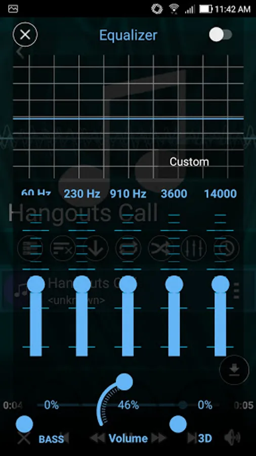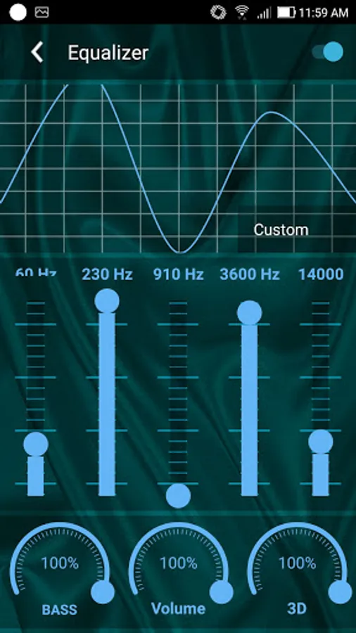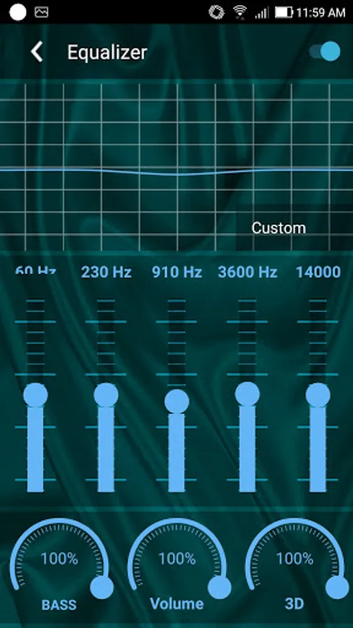 - Equalizer. Set equalizer for your playing audios. You can use presets or change sets manually. Set volume, bass, 3D effect (reverb).
