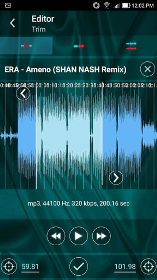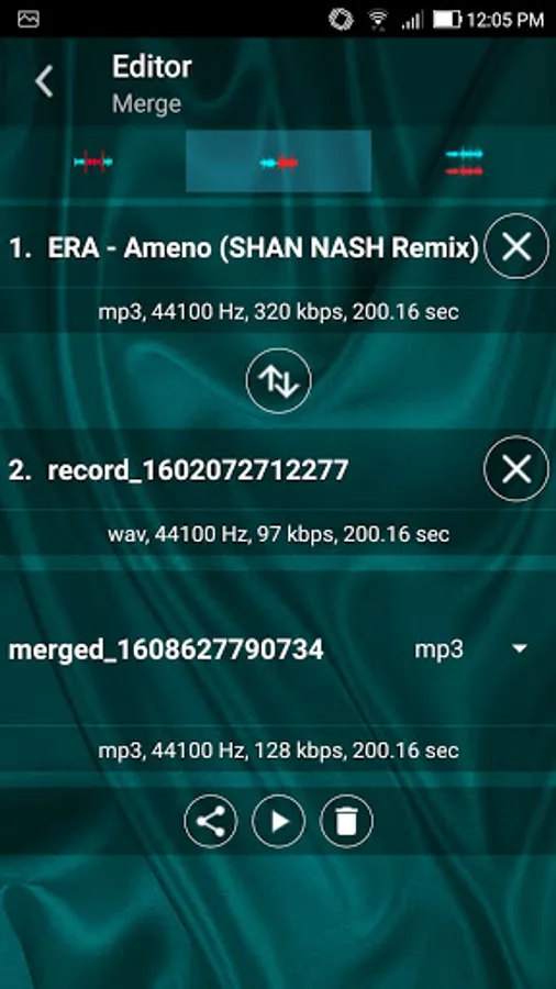 - Editor. Trim, Merge, Mix audio files. Load audio file stored on device and trim selected part. Mix two audio files to one file. Merge two audio files to one file one after one.