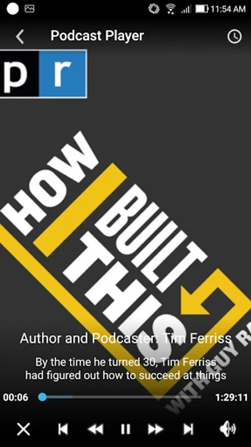 - Podcast. Listen your favorite podcasts. Choose or search podcasts, listen or add them to playlist. All listened podcasts are saved to history.