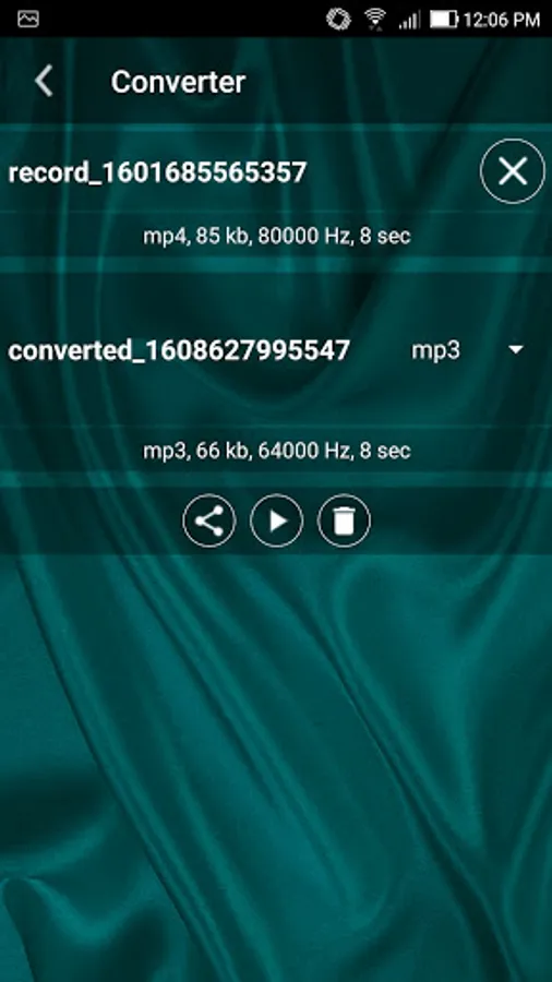 - Converter. Load audio file from device memory and convert it to any format you want.