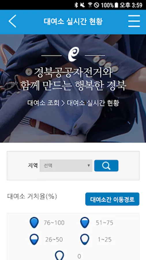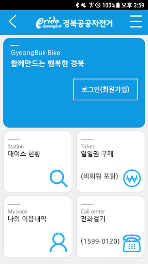 경북도청신도시에서 운영하는 공영자전거 전용앱으로 회원가입 및 이용권구매, 대여, 반납, 스테이션 확인 등이 가능합니다.