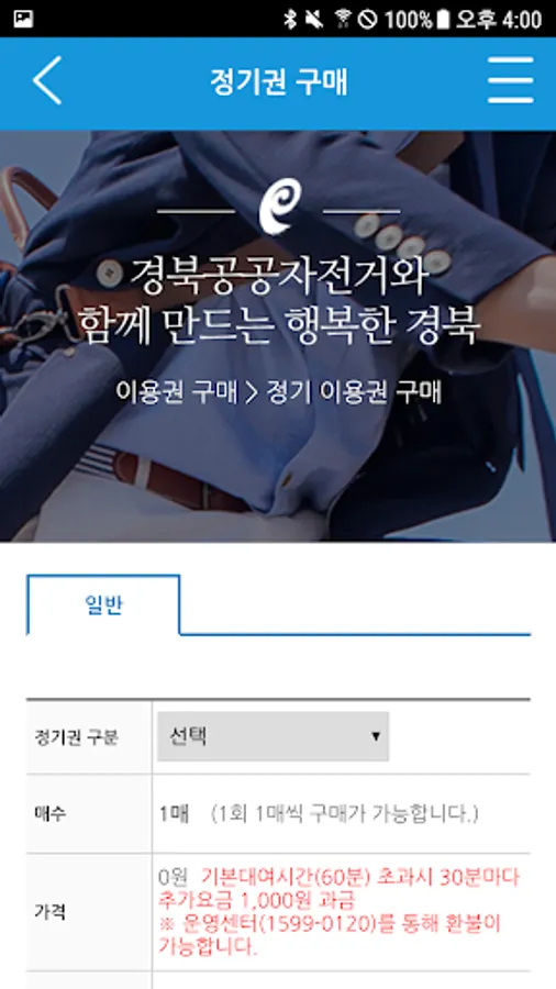 ‘경북도청신도시 공영자전거’ 홈페이지 또는 앱에서 구매할 수 있습니다.