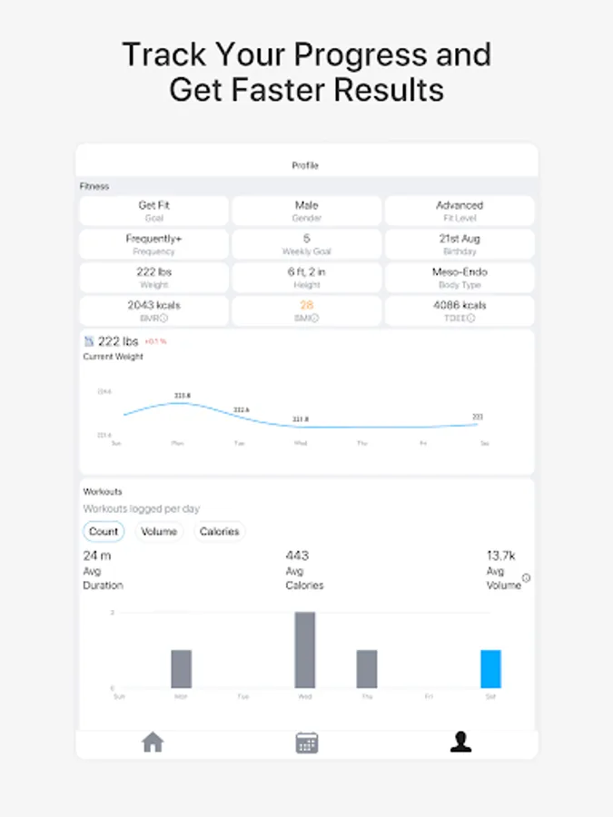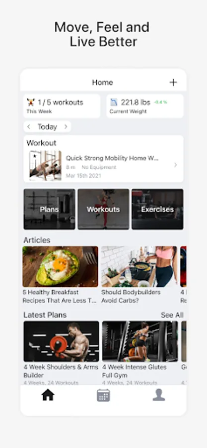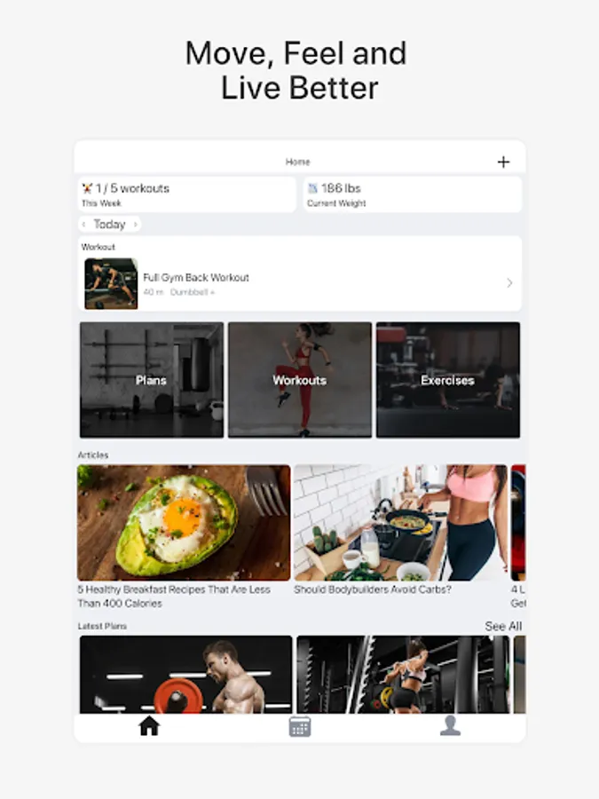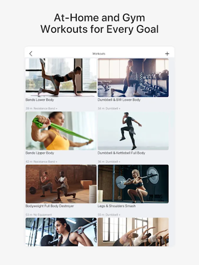 - Recommended workouts for every goal.