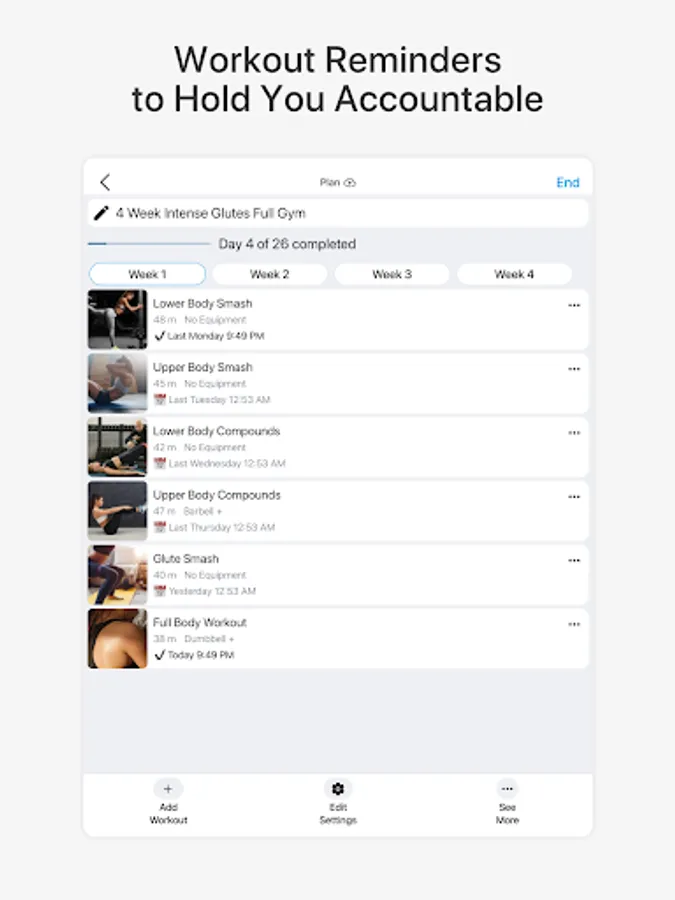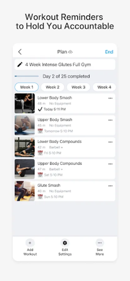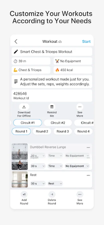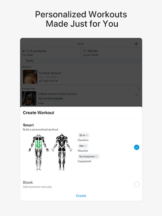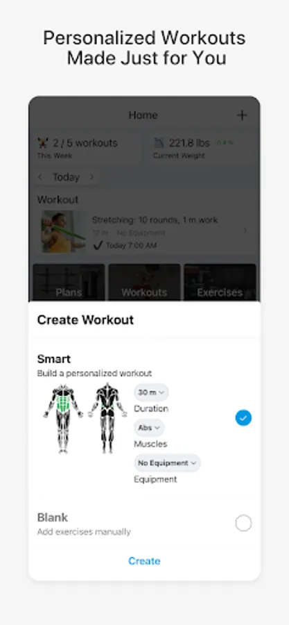- Workouts suggested based on your goals.