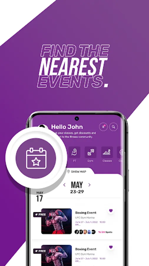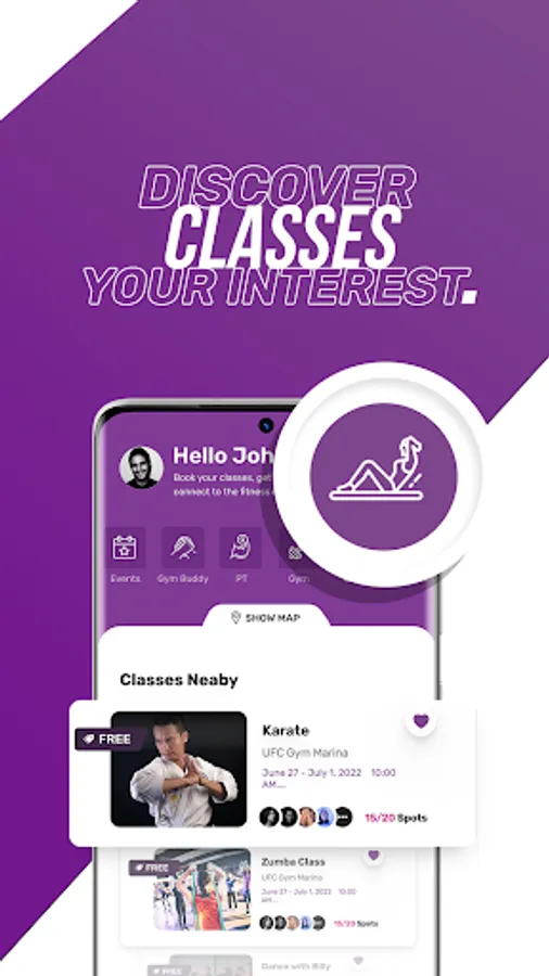 Connecting you with users with the same interests inspires and motivates like no other. You can train, attend class or go to the gym together.