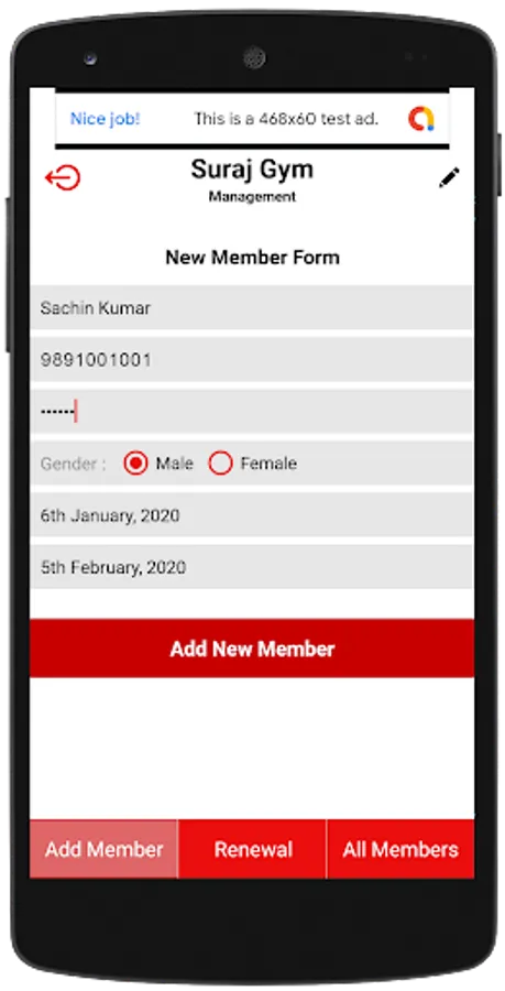 jo unko unke gym ki taraf se user name or password mile unko add karne par via Massage