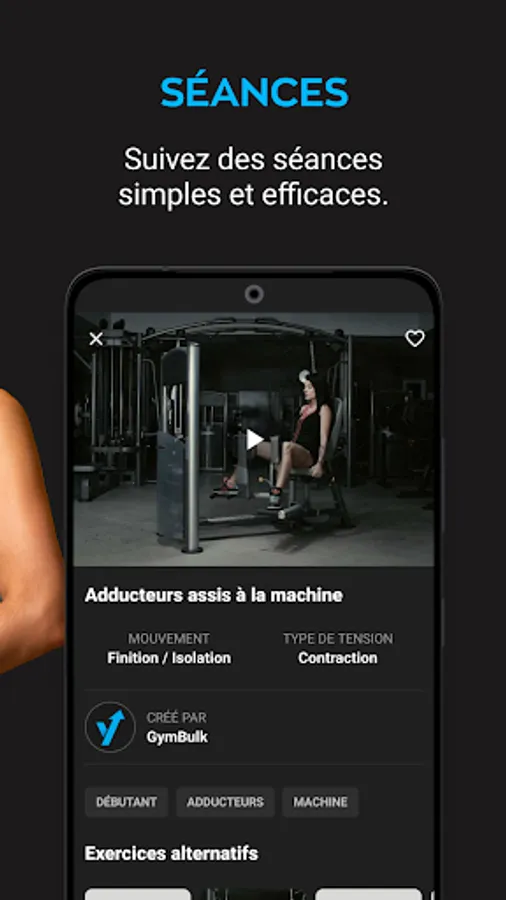 Each exercise is explained with an explanatory video (more than 500 video exercises) of the movement, the number of repetitions to do, the weight to use and the rest time to take.