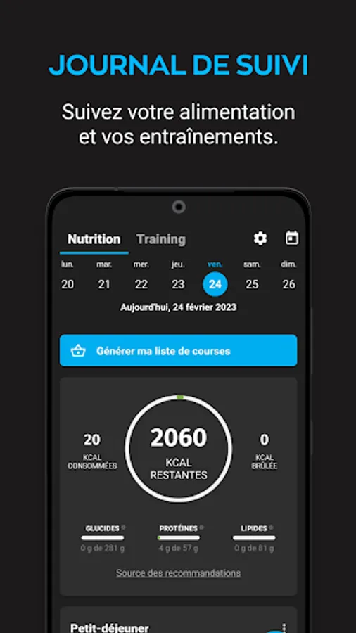 Thanks to the statistics monitoring module, analyze your evolution and your progress over the short, medium and long term (evolution of weight, BMI, calories/carbohydrates/lipids/macronutrients/proteins consumed) allow GymBulk to follow you and challenge yourself to continue your efforts.