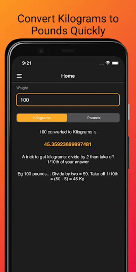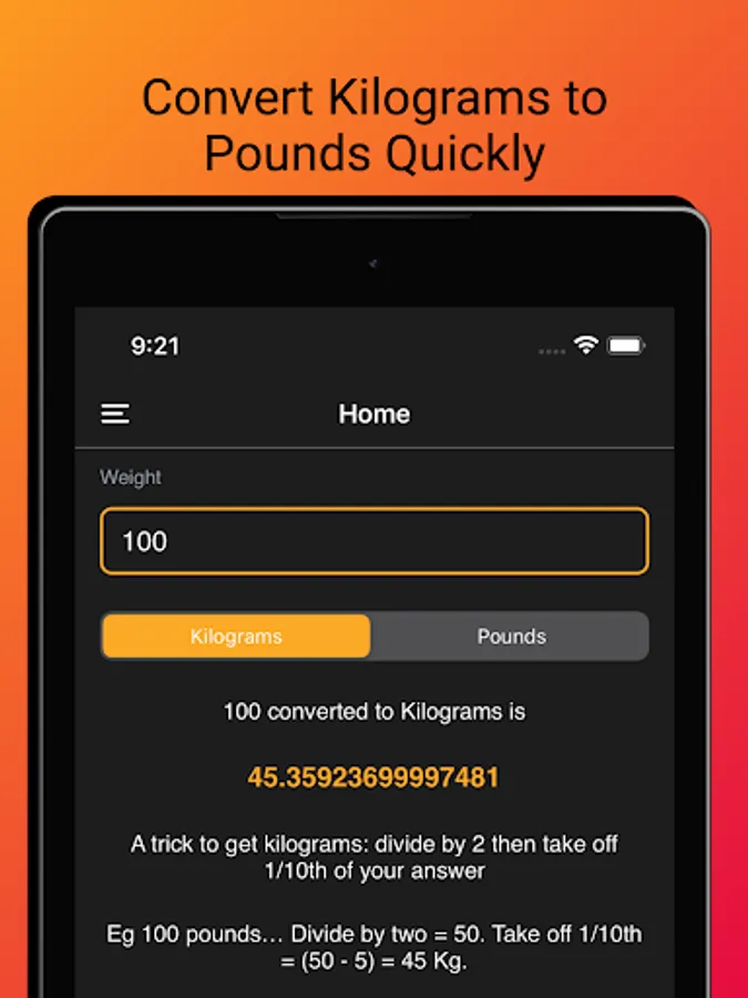 A one-stop app for calculating percentages for weights, converting between kilograms and pounds, a stopwatch, and a timer.