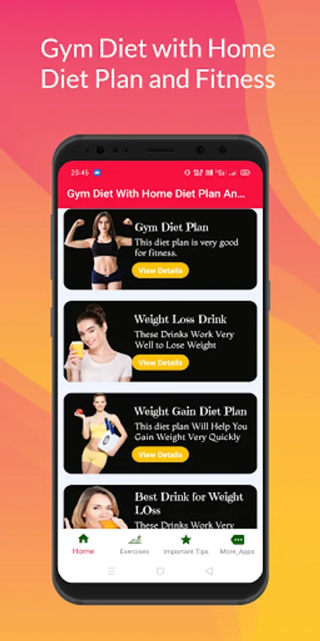 Gym Diet With Home Diet Plan And Fitness app is to help the people to obtain proper Diet and Nutrition as a state to their health, desire and weakness. Most of the people can't find the relevant diet to be