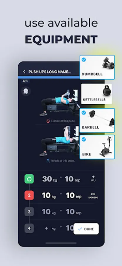GymDone is your perfect digital personal trainer app, that will help you do your full body workout including all muscle groups, fit bod (fitness body), chest workout, back workout, abs six pack workout, glutes workout, butt & legs in your gym.