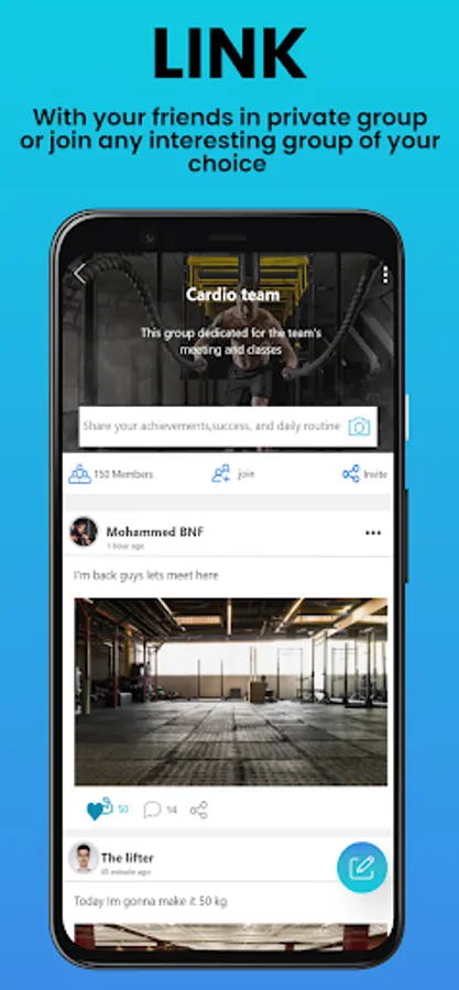 Link with your friends in gym or outside gym like enthusiasts and build up your own community