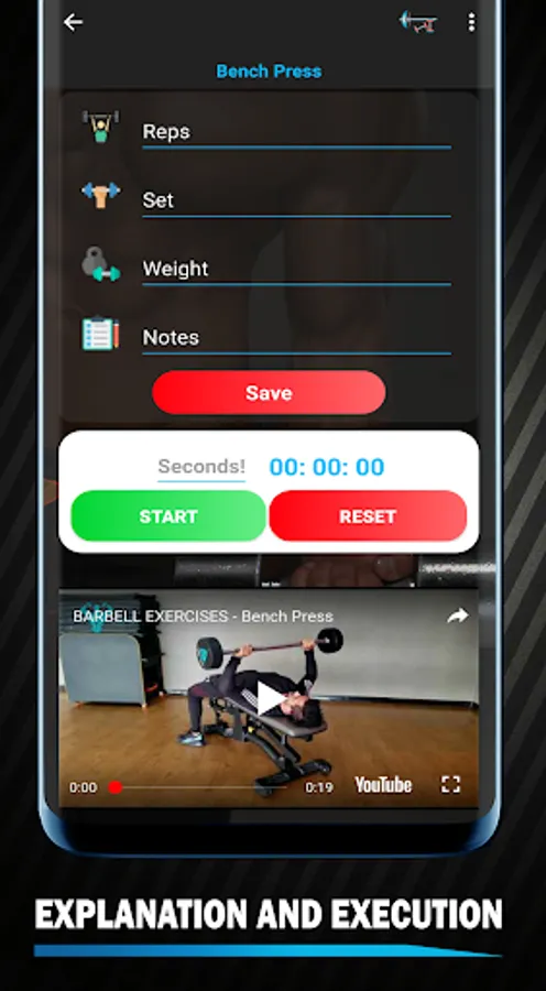 Each dumbbell exercise and barbell exercise has its respective explanation, illustrative images and an explanatory video, so you can execute it correctly.