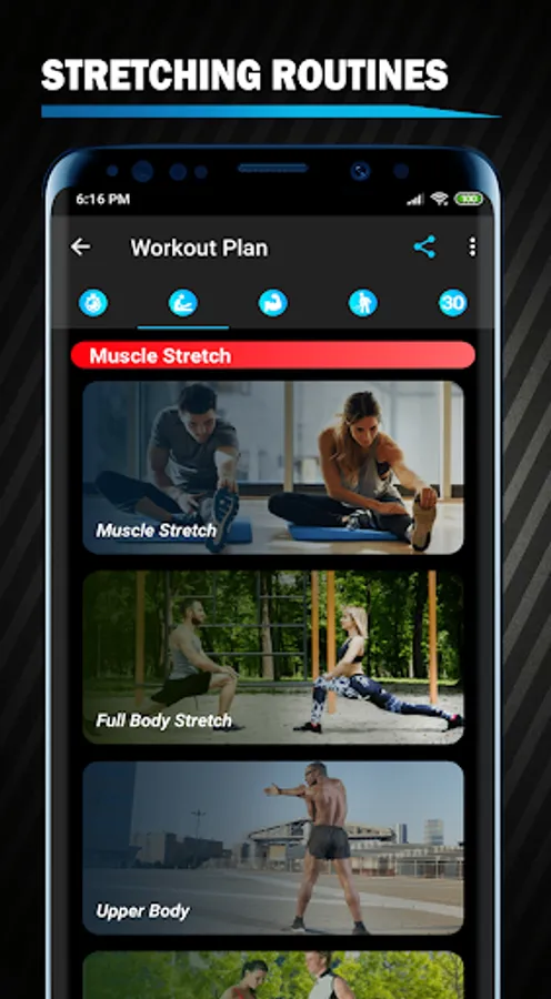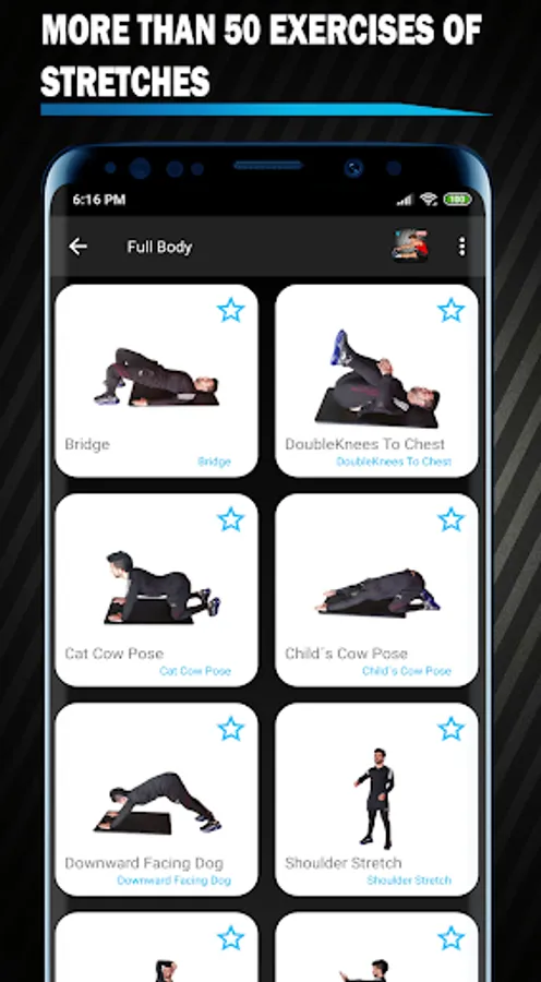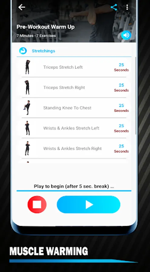 - Muscle Stretch (Back, legs, Arms, Neck, Shoulders, Buttocks, abdomen)
