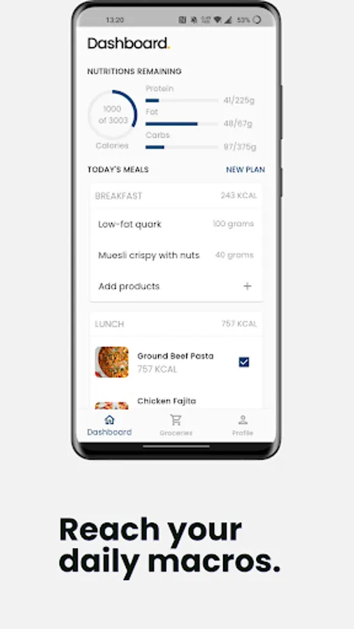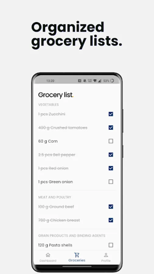 PrepMe is the perfect tool for your weekly meal prep. It helps you reaching your goals by calculating your nutritional needs and offering recipes that are adjusted to these values. Build your meal plan and select the recipes you like. The app creates a personalized grocery list for you. Afterwards, just follow to the easy recipes, start your meal prep and reach your goals!