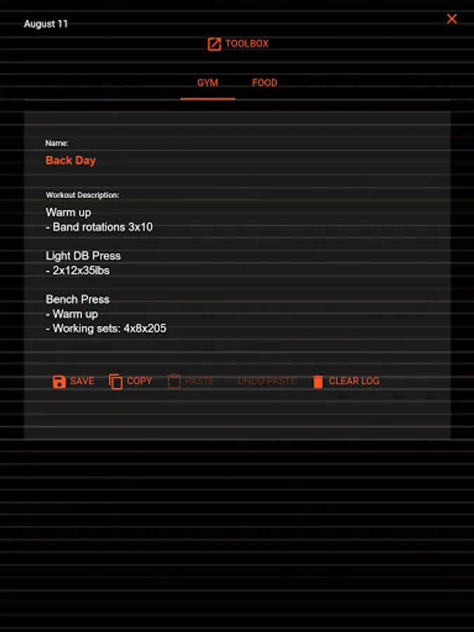 ***Easy to use calendar based gym note taking***