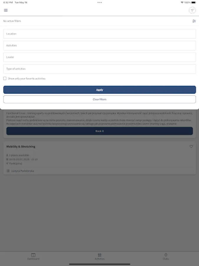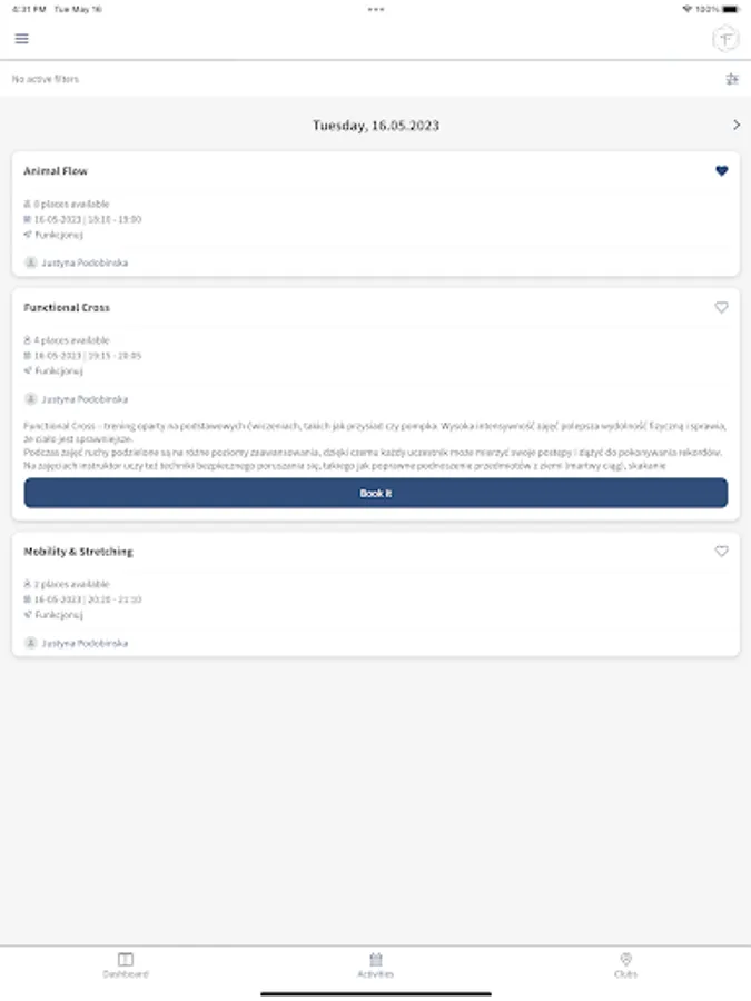 Get constant insight into your profile in the club. Thanks to the Function app, you can at any time: