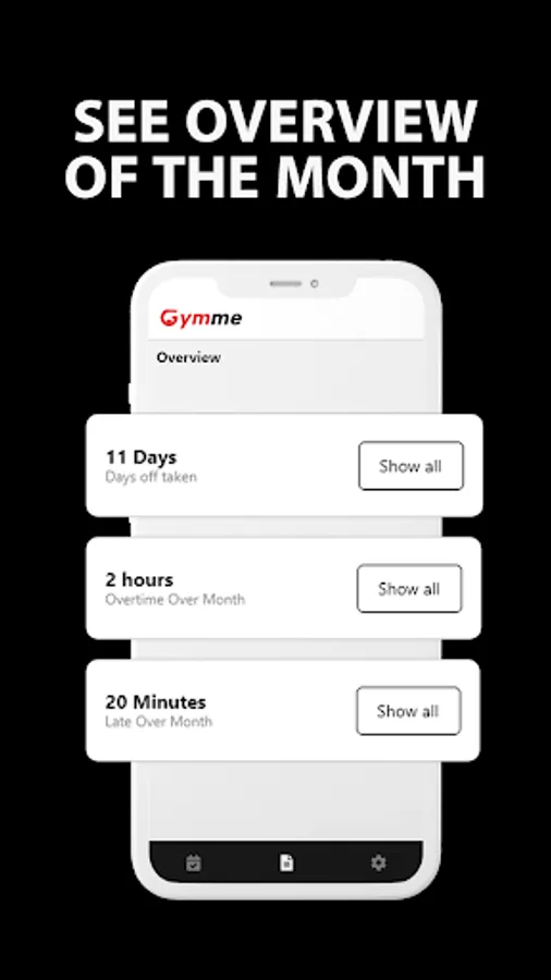 Gymme Teams allows your Gym employees to keep track of their attendance, days off taken, and overtime over the month.