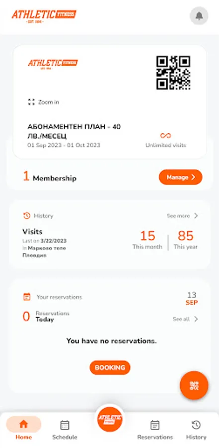 We provide you with an easy and convenient way to track your workouts, book sessions, and gain access to your favorite fitness center. Our app allows you to enter the gym with just a QR code generated from your mobile device. Plan your workouts and book spots in group activities. Never miss your favorite yoga or Pilates session again! Stay informed! Receive notifications for upcoming workouts, special offers, and news from our fitness center.