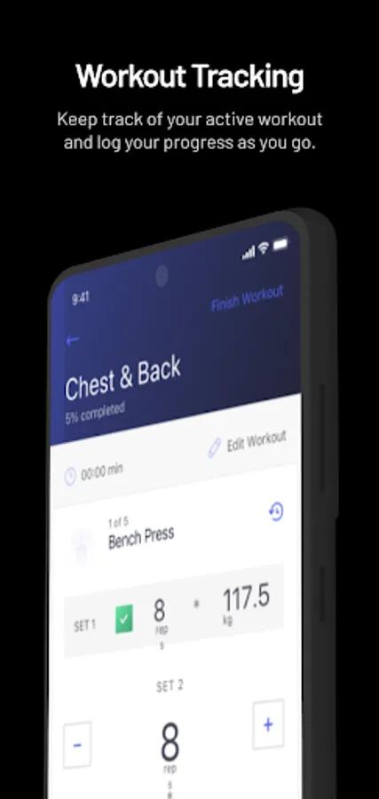 - Active workout tracking with quick gestures so you can spend less time typing and more time lifting