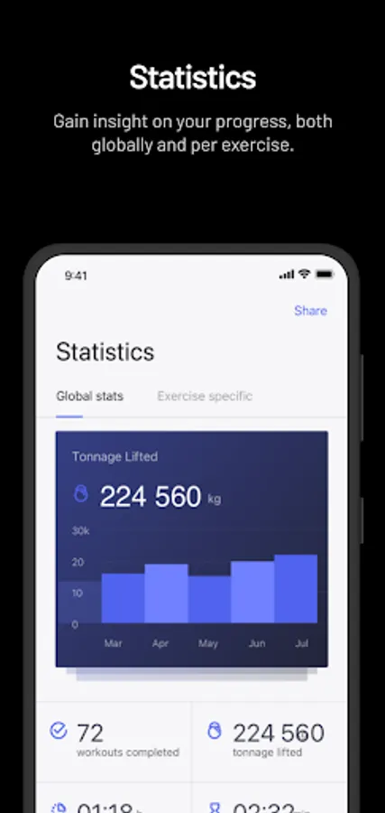 - Exercise specific statistics so you can track your progress on your favorite movements