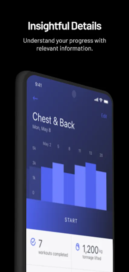 - Visual representation for all relevant data including what muscle groups you're hitting, PRs, time spent, and much more