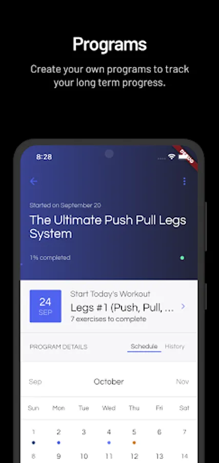 - Workout calendar log so you can see all your workouts for the past, present, and future