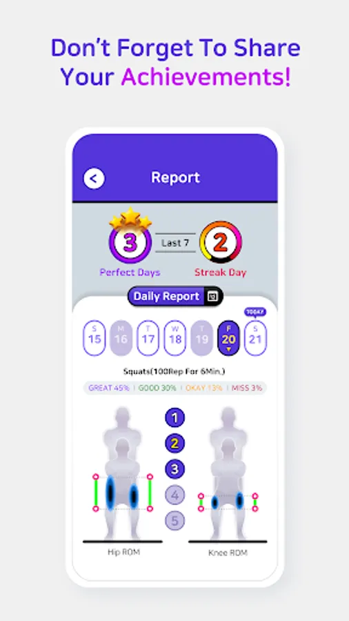 ○ To collect ‘Streak day’, complete more than 1 set in a row.