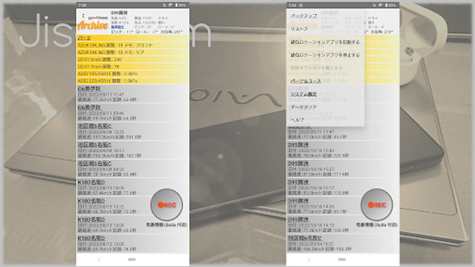 It is an application that records GPS position information and running data such as speed, acceleration, roll, pitch, temperature, humidity, road surface temperature, weather, road surface condition, barometric pressure, setting information for motor sports. The recorded data can be checked on the viewer by combining the running trajectory with information such as speed, acceleration, pitch and roll. For temperature, humidity, and weather, weather information can be acquired and automatically set using the Internet (cancellation option function). The temperature and humidity can be set automatically in cooperation with the SwitchBot thermo-hygrometer (MAC address of the SwitchBot thermo-hygrometer is required). You can edit directly by tapping temperature, humidity, road surface temperature, weather, road surface condition, and barometric pressure.By connecting an external GPS sensor other than the built-in GPS as a mock location service, it is possible to record a driving track with higher accuracy than the built-in GPS. To select a course, tap Course to display the course selection screen, so select the course (course registration is required in advance).In the course registration, you can select from the shooting record using the course name and the built-in camera, and the image on the smartphone body (the recorded image can be confirmed with the viewer).To register the setting information, tap Parts to display the parts selection screen, so select Parts (part name).By tapping the Parts (part name) added as setting information, you can register / change the setting information (adjustment value, memo) (parts to be added as setting information need to be registered in advance). To register, modify, or delete courses and parts,On the Parts & Course screen, you can register a new course or parts by tapping and . When registering a new course, you can enter the course name, and when registering a new part, you can register the part name, memo, and number of uses. To modify a part, tap the Parts (part name) you want to modify. To modify the course, tap the Course (course name) you want to modify to display the function menu. Select change course name, image display, image selection, or camera shooting.Driving data and setting information can be deleted by swiping left. Courses and parts can be deleted by swiping up on the Parts & Course screen.