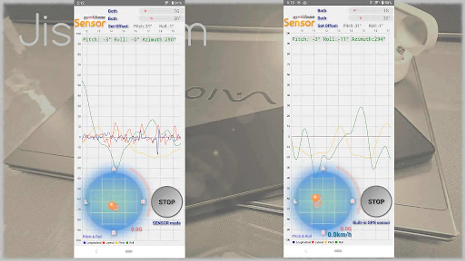 Using the built-in sensor of the smartphone, the vertical acceleration, horizontal acceleration, front-back tilt (pitch), and left-right tilt (roll) of a vehicle such as a car are displayed in a graph. It is an application. The usage is here .. The items to be displayed can be selected arbitrarily, and the start and end of measurement are operated with the buttons. After measurement, check the graph by pinching.