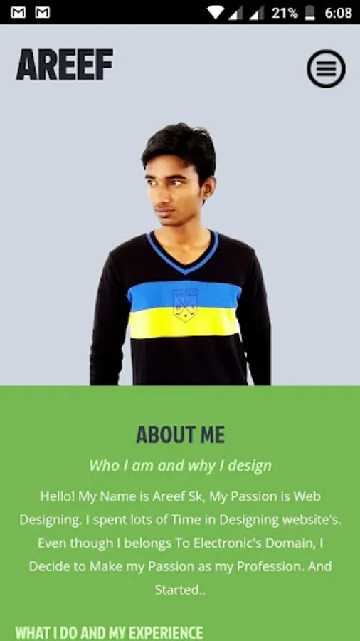 Hello! My Name is Areef Sk, My Passion is Web Designing. I spent lots of Time in Designing website's. Even though I belongs To Electronic's Domain, I Decide to Make my Passion as my Profession. And Started.