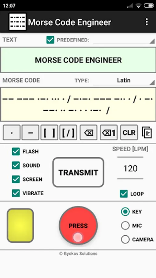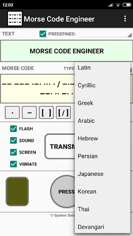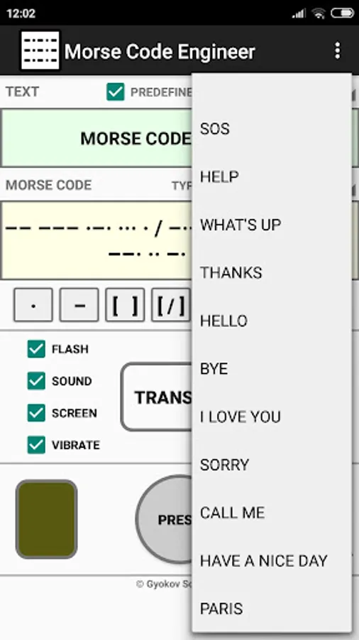 Morse code audio and light decoder, transmitter and morse code <-> text translator. Decode morse code transmission audio or light. Transmit using sound, flash, screen and vibration