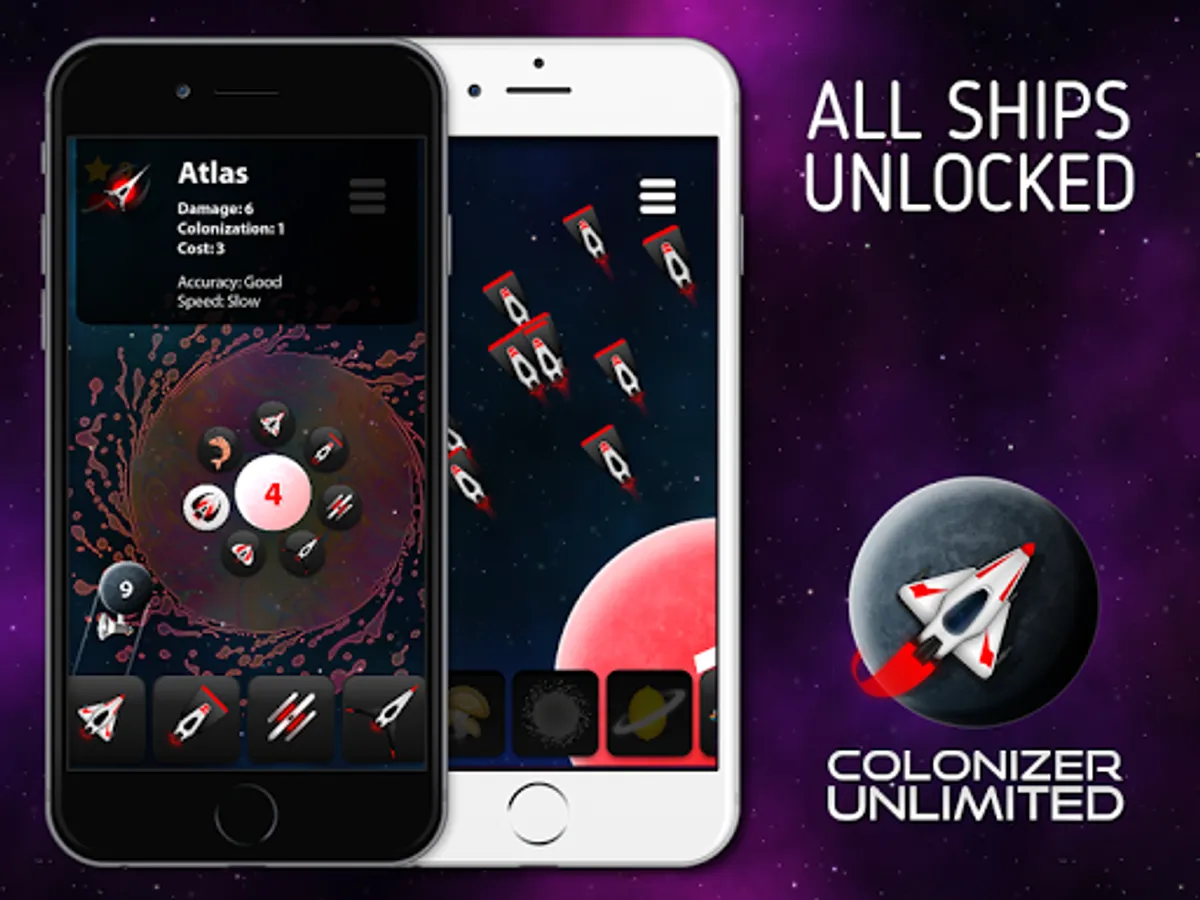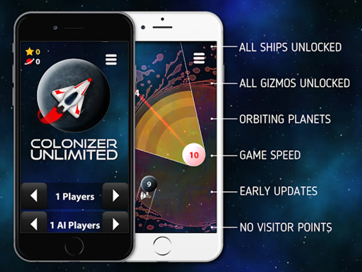 Colonizer is a strategy game set in outer space. You will command a diverse fleet of ships and attempt to claim more planets than your rivals, earning stars that allow access to some of the stranger power-ups that the galaxy has to offer (Floating empanada defense system, anyone?).
