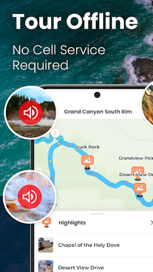 Bring GuideAlong with you for your backroads trips and car journeys. No need for cell service or WiFi while on the road, even in remote locations like regional parks. Everything is downloaded to your device so you can enjoy your road trip with a GPS guide. The app also offers trip planning & suggested itineraries to make the most of your national park tours. You can also listen to commentary before & after you travel & play your own music in the background.