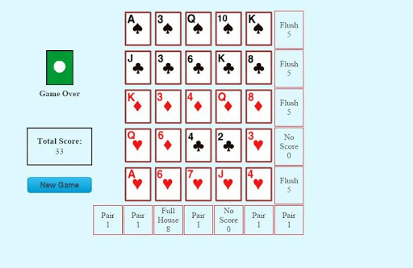 Love solitaire? Try Poker Solitaire and make as many hands as you can.