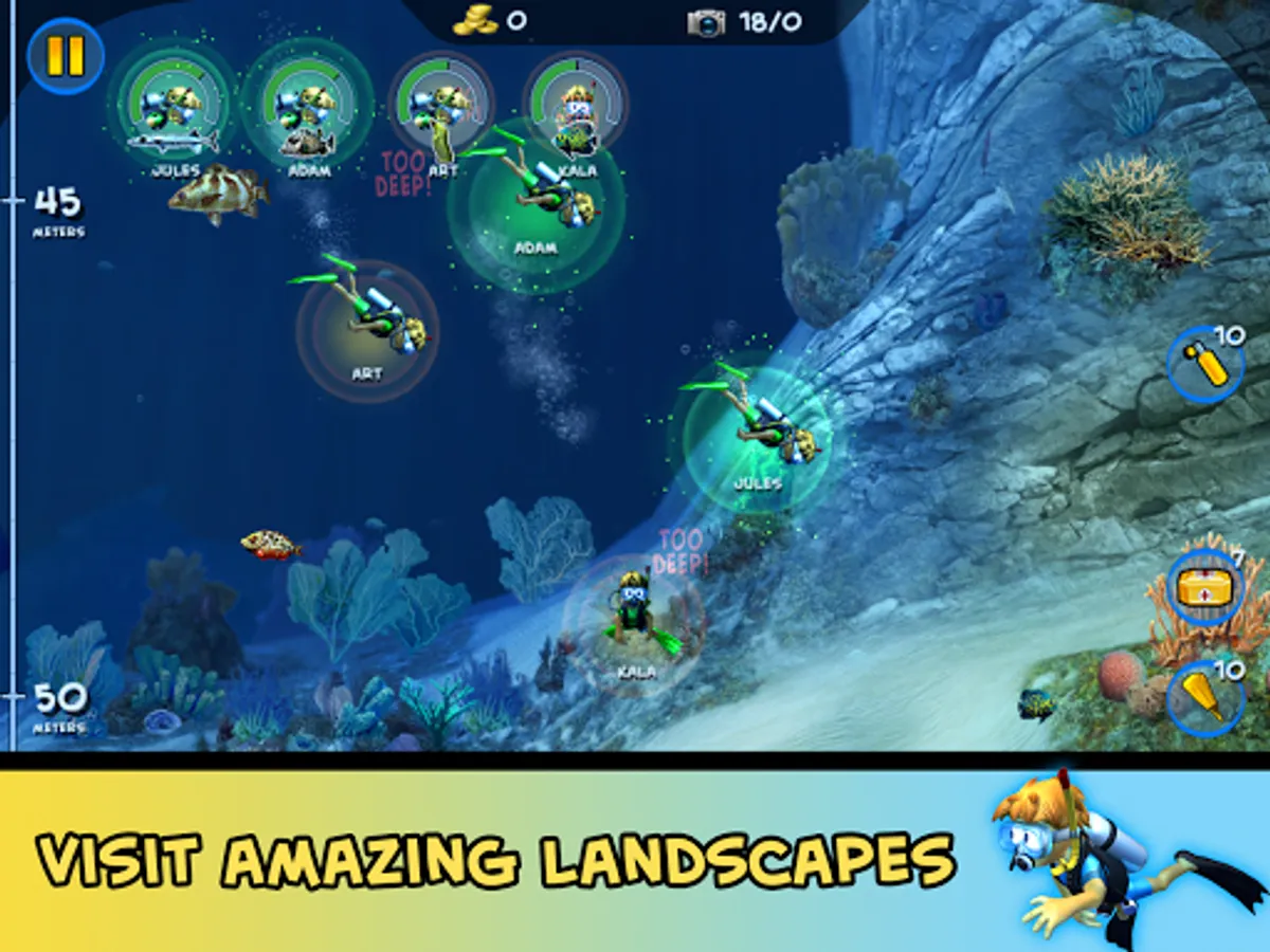 * Show us that you can guide the highest number of divers in this free cartoony scuba diving game!