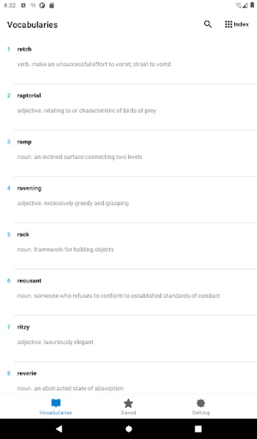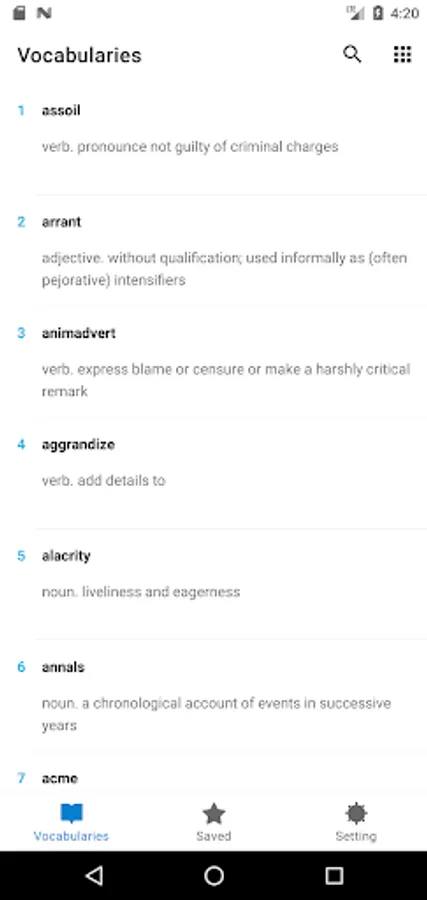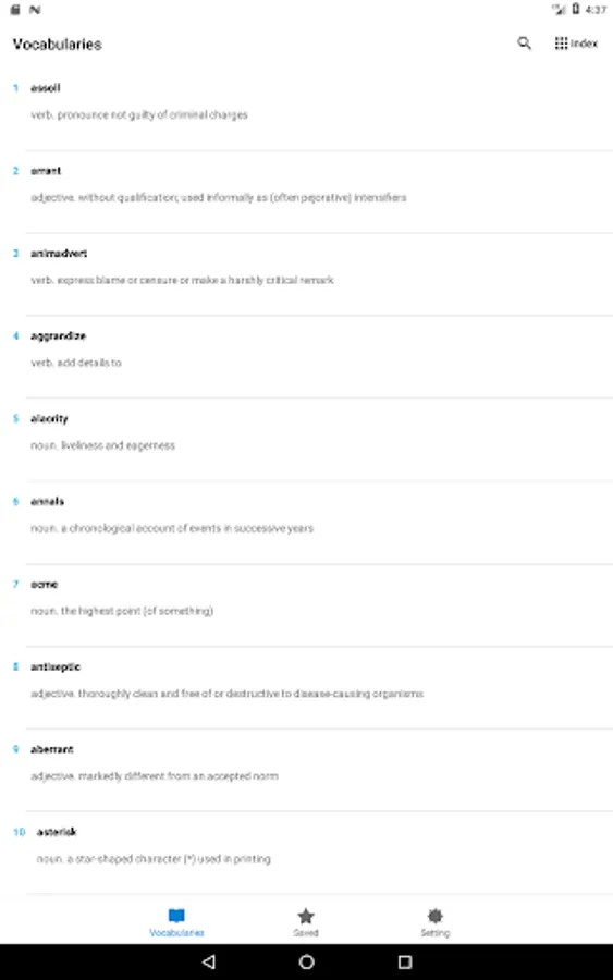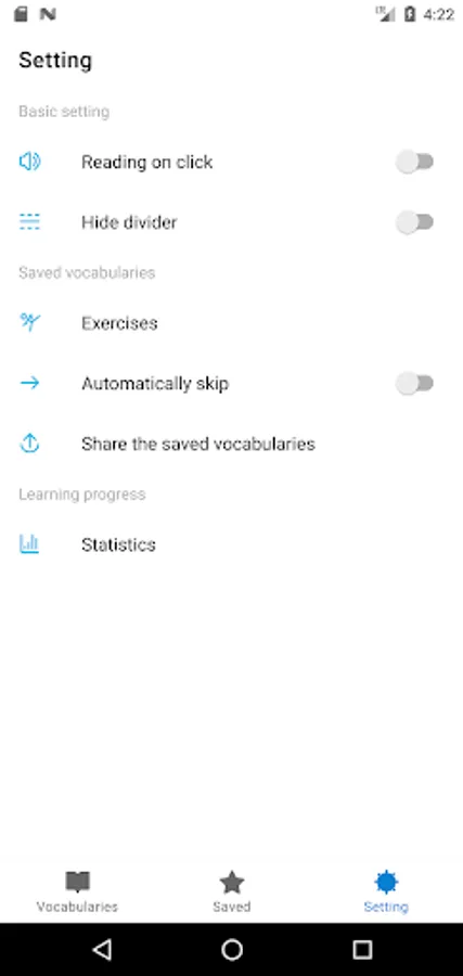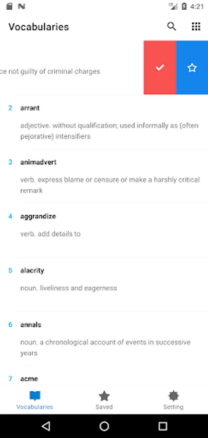 -Vocabulary can be marked as saved and mastered