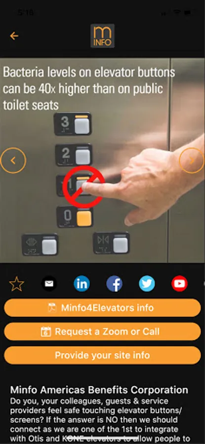 Get more info on anything Minfo enabled that piques your interest. Think of it as an Audio QR Code connecting you to info, ads, menus and controlling devices such as elevators. A safer way to get through each day by removing the need to touch buttons, menus, payment devices and more.